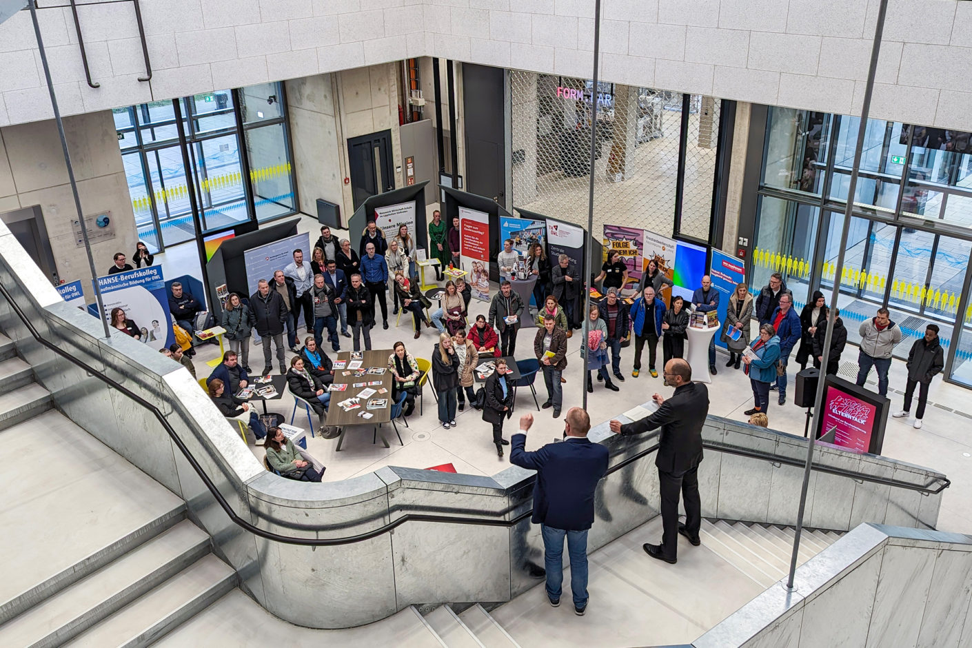 Rund 70 Besucher:innen informierten sich bei der Veranstaltung mit Vorträgen der Studienberatung der Uni Paderborn und der TH Ostwestfalen-Lippe, von Beratern der Industrie- und Handelskammer Lippe zu Detmold und der Kreishandwerkerschaft Paderborn-Lippe, sowie der Agentur für Arbeit und einer Vertreterin der Berufsmesse my Job OWL.