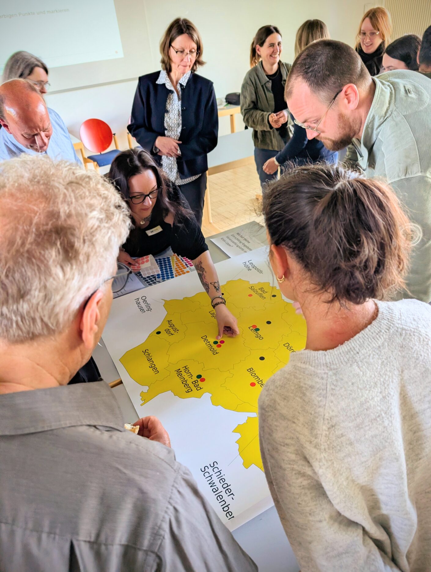 Ein weiterer Schwerpunkt lag auf aktuellen Aktivitäten im Kreis Lippe. Gemeinsam wurden bestehende Angebote sichtbar gemacht und auf einer Lippekarte gebündelt. Dadurch konnten auch sogenannte „weiße Flecken“ identifiziert werden, die als Ansatzpunkte für zukünftige Kooperationen und neue Angebote dienen.